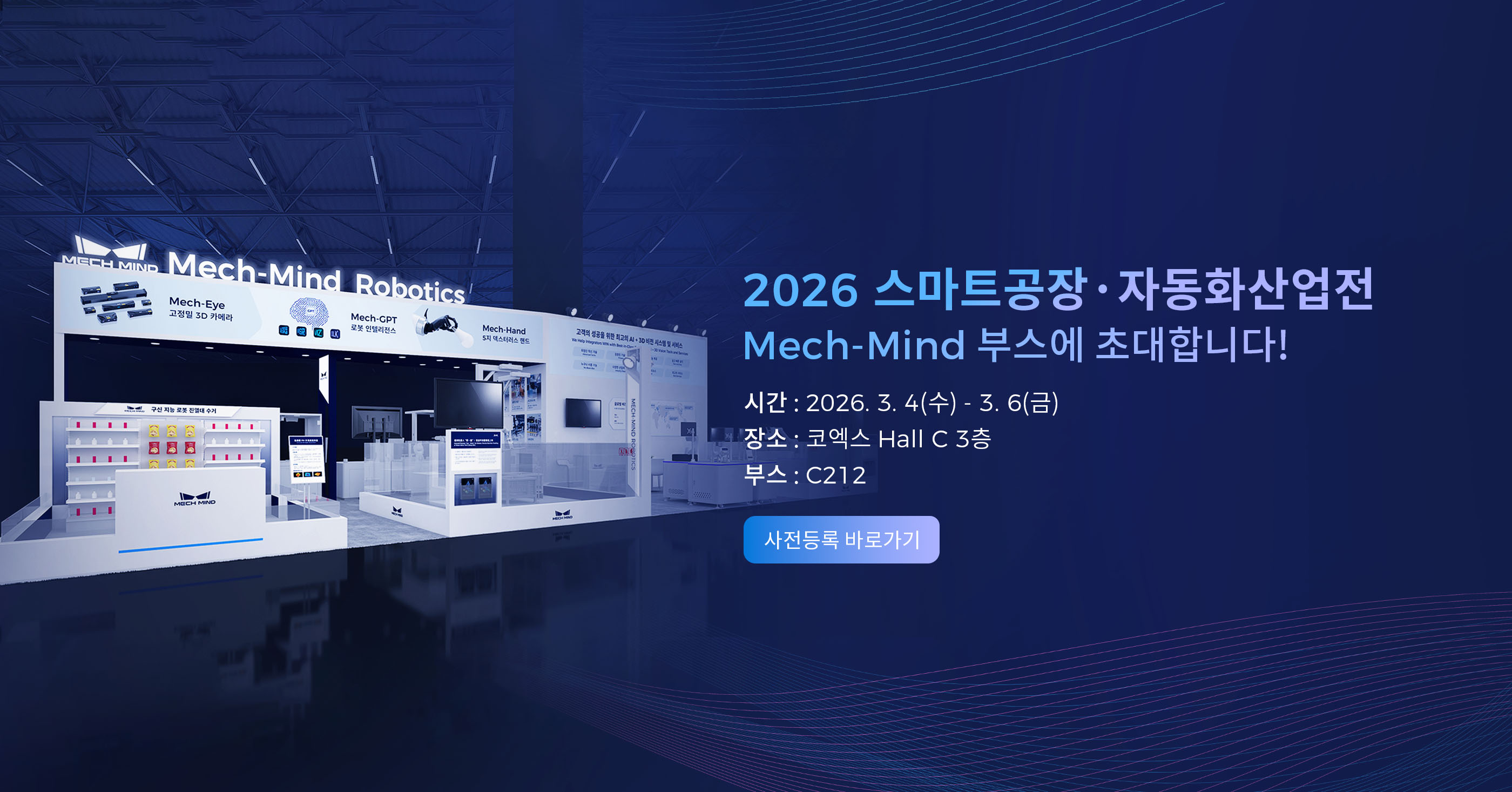 iREX 2025 Mech-Mind 부스에 초대합니다! | 'Eye-Brain-Hand' 로봇 체현 지능과 신제품을 만나보세요체현 지능 기술 분야의 글로벌 유니콘 기업인 메크마인드가 제26회 국제로봇전시회(iREX 2025)에서 네 번째로 참가할 예정입니다. 이번 전시회는 2025년 12월 3일부터 6일까지 일본 도쿄 빅사이트에서 개최됩니다. 세계 최대 규모이자 가장 영향력 있는 로봇 전시회 중 하나인 iREX 2025에는 전 세계 700여 개의 로봇 분야 선도 기업이 참가해 첨단 기술과 혁신 제품을 선보이며, 역대 최대의 참가 규모를 기록할 전망입니다.