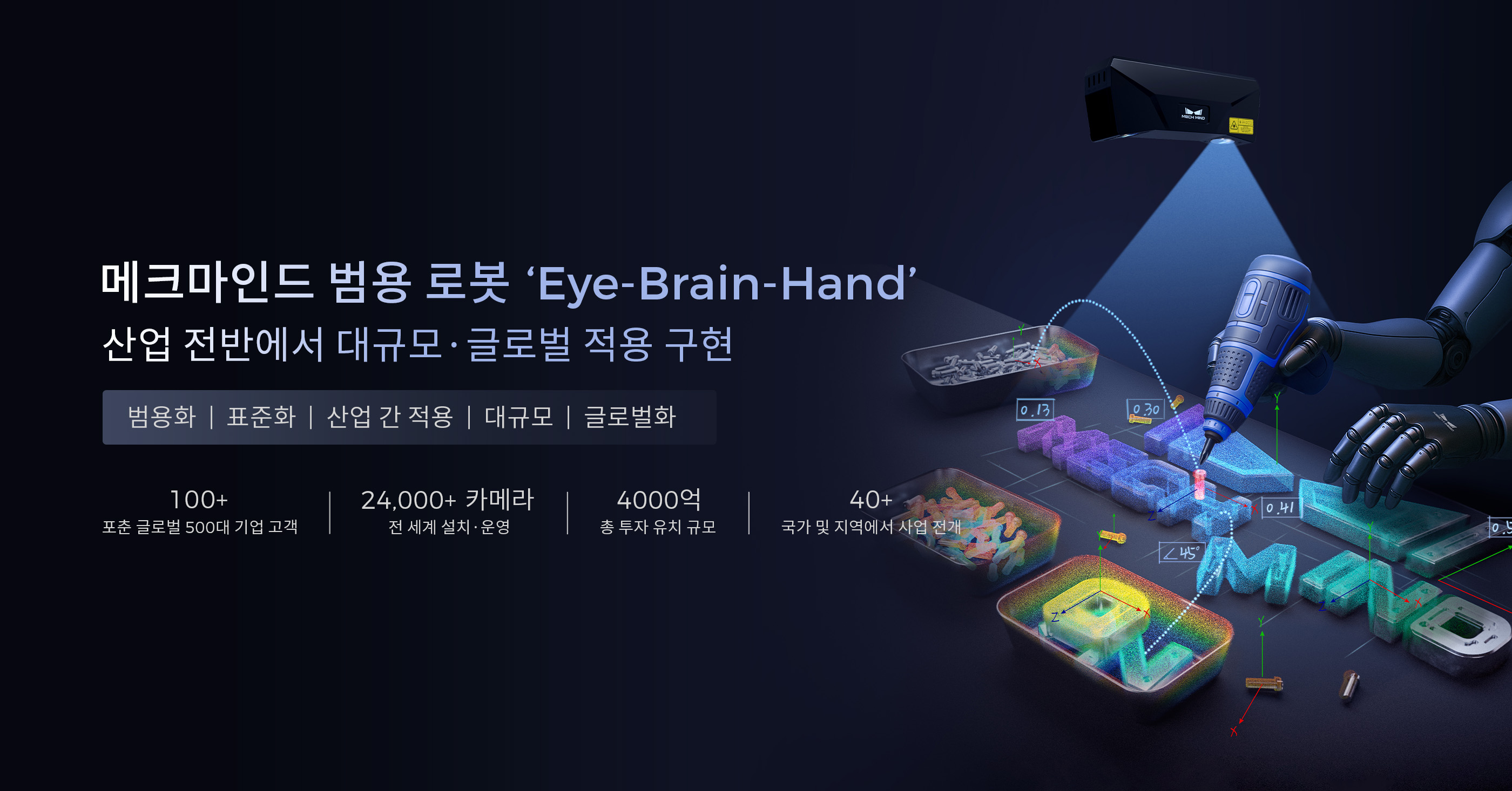 AW 2026 Mech-Mind 부스에 초대합니다! | ‘Eye-Brain-Hand’ 체화 지능 로봇과 신제품을 만나보세요.메크마인드는 AW 2026에서 자체 개발한 범용 ‘Eye-Brain-Hand’ 로봇 포트폴리오를 선보일 예정입니다. 이번 전시회에서는 다수의 글로벌 신제품을 최초 공개하고, 10대 이상의 체화 지능 데모 유닛을 통해 다양한 시연을 진행할 예정입니다.