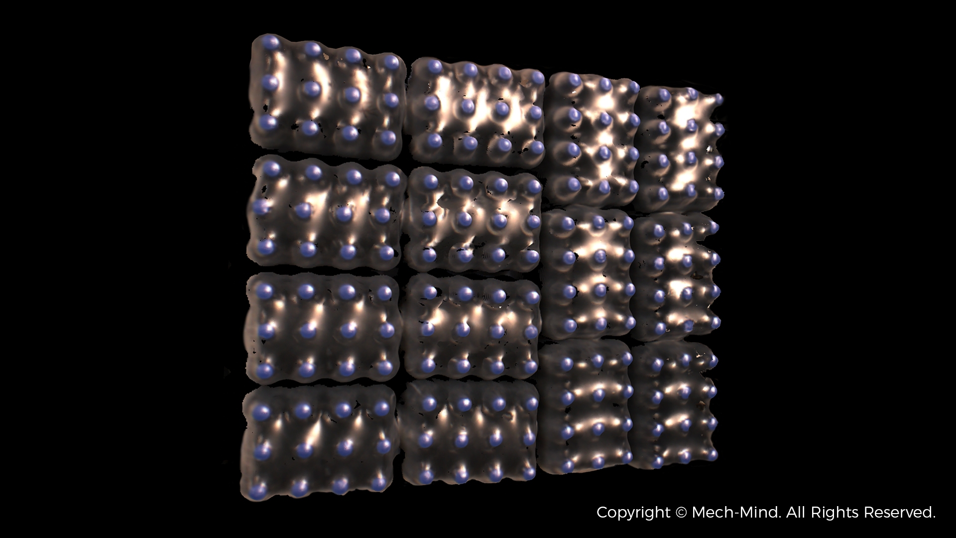Mech-Mind의 'Eye + Brain' 솔루션은 고정밀 3D 카메라와 AI 소프트웨어 제품군을 포함하여, 산업용 로봇에 강인한 인식 성능과 운동 계획 기능을 제공합니다. 본 시스템은 투명 수축 포장된 패키지의 완전한 3D 포인트 클라우드를 제공하고, 밀집 적재된 제품과 그 방향을 정확하게 인식하며, 충돌 없는 단일 또는 멀티 피킹 운동을 계획하고, 로봇이 안정적으로 디팔레타이징을 수행하도록 가이드합니다.